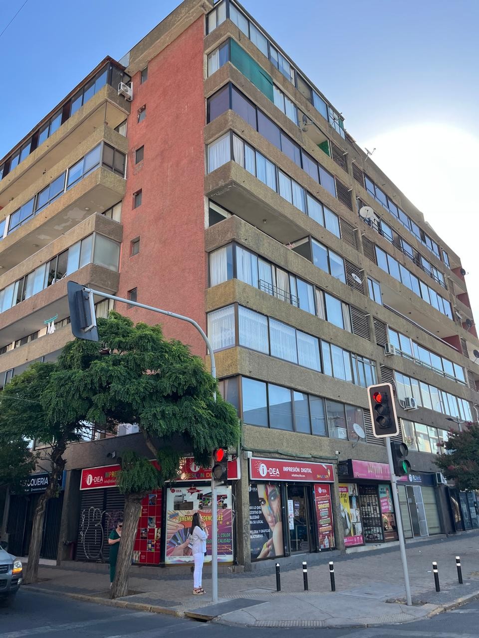 Departamento en 7° piso, hall de entrada, living comedor con salida a terraza, baño de visita, closets de pasillo, 2 dormitorios, baño con tina todo cerámica. Cocina amoblada todo cerámica, logia. Terraza/Balcón. Estacionamiento y bodega. Gastos comunes incluidos en el precio.