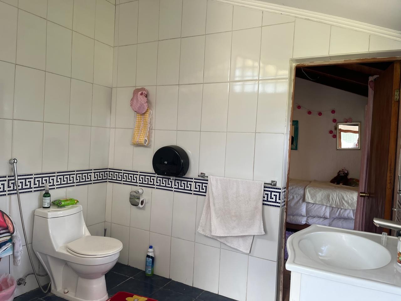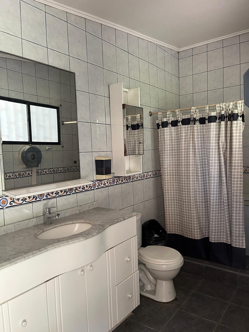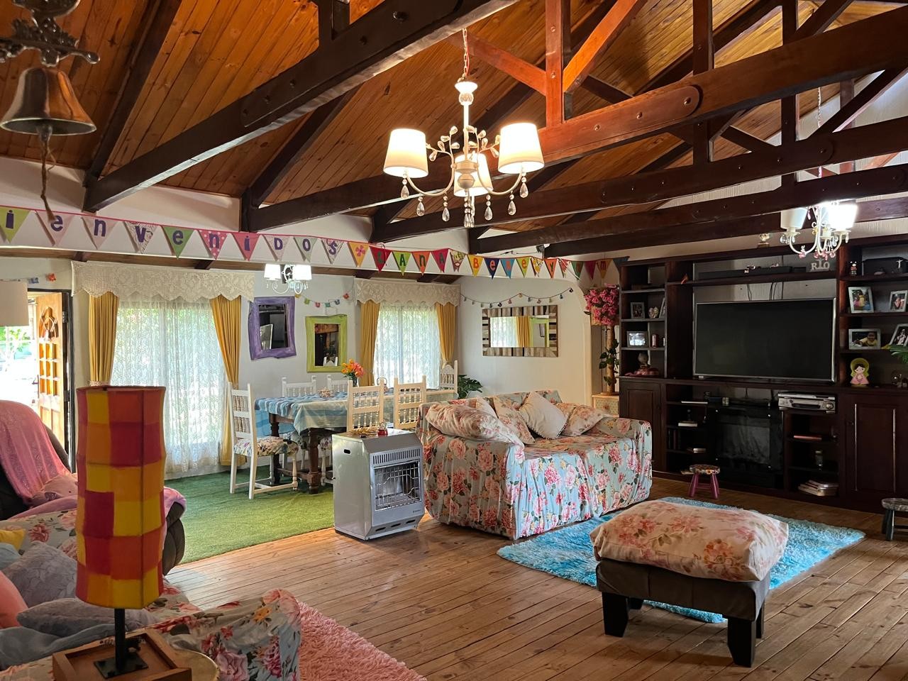Código: 2443 Casa de 1 piso, hall de acceso, amplio living comedor, con vigas a la vista, cocina amplia amoblada (ceramicas) 3 dormitorios amplios, 2 en suite, closet. Departamento independiente con baño, bodega, quincho. Piscina grande, piscina para niños. Patio con árboles y arbustos, jardines formados, con agua potable y agua de pozo